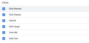 - Enable a bunch of pre-made variables that come with GTM. They are not all enabled by default and we’ll need to use some of them in our trigger later so head to the variables page again, click Configure on built-in variables and enable the following: